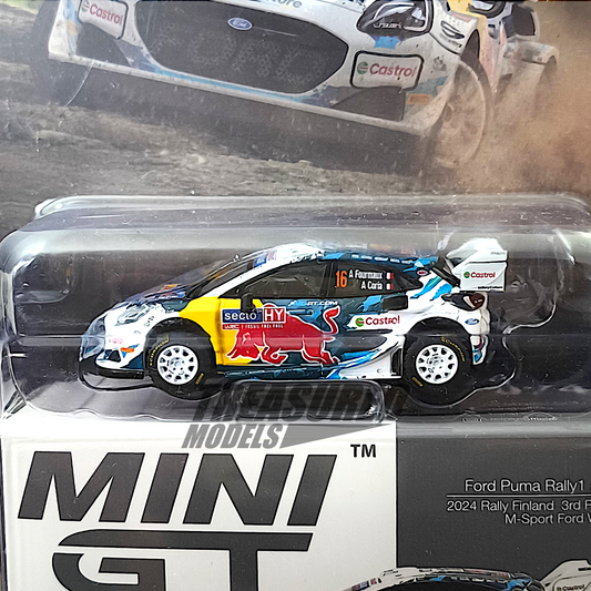 Mini GT Ford Puma Rally1 #16 M-Sport Ford WRT 2024 Rally Finland 3rd Place Blister Packaging MGT01074 1/64 Die Cast