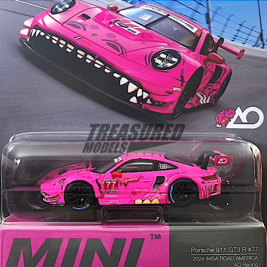 Mini GT Porsche 911 GT3 R #77 Roxy AO Racing 2024 IMSA Road America Blister Packaging MGT01052 1/64 Die Cast
