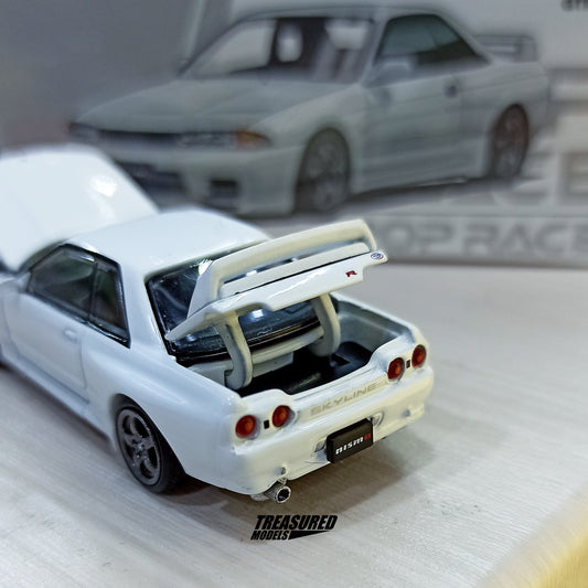 Pop Race Nissan Skyline GT-R R32 Crystal White 1/64 Die Cast