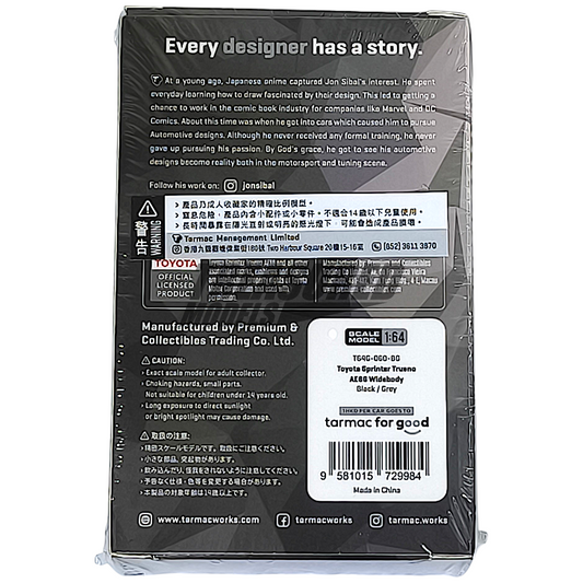 Tarmac Works Toyota Sprinter Trueno AE86 Widebody Black Gray Jon Sibal 1/64 Die Cast